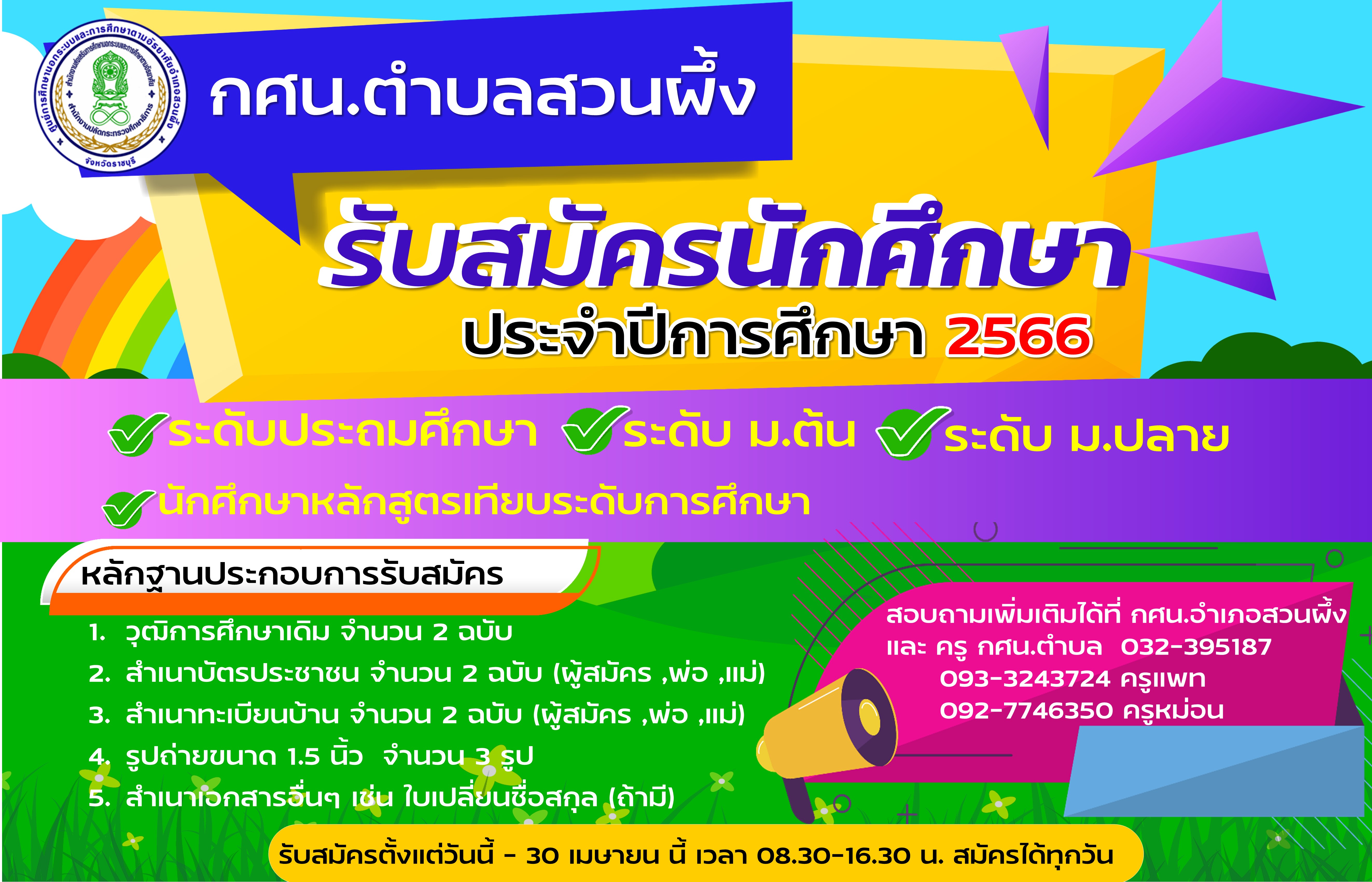 กศน.ตำบลสวนผึ้ง รับสมัครนักศึกษา ภาคเรียนที่ 1/2566