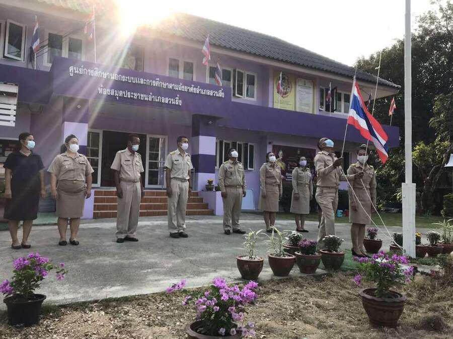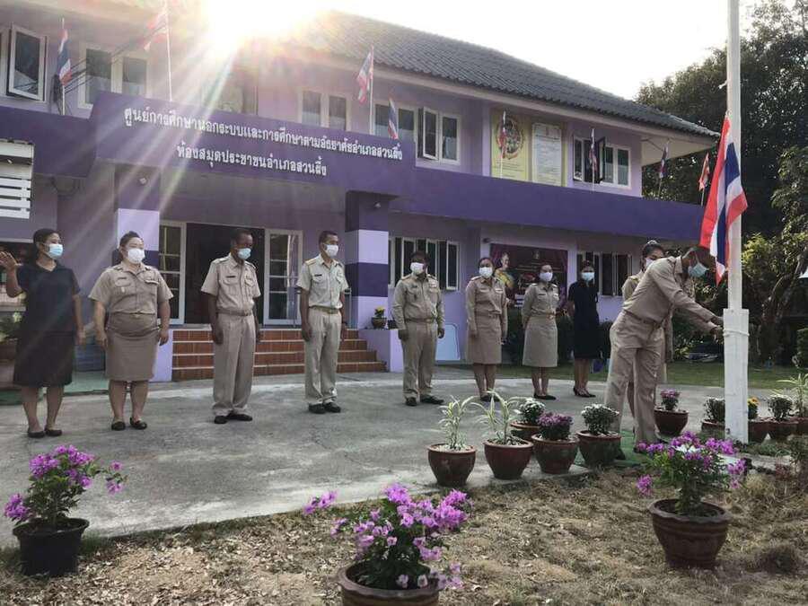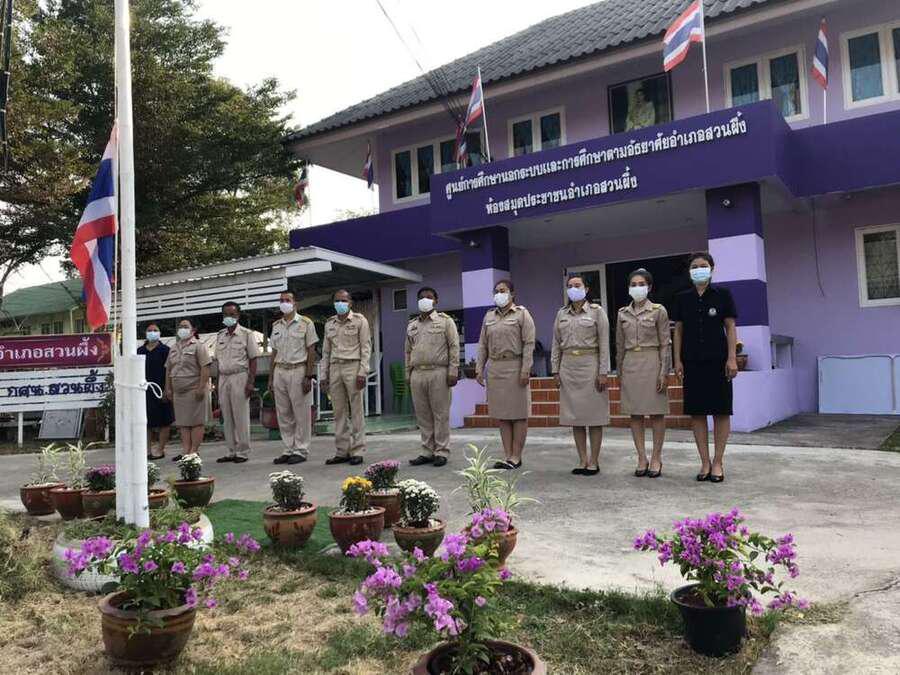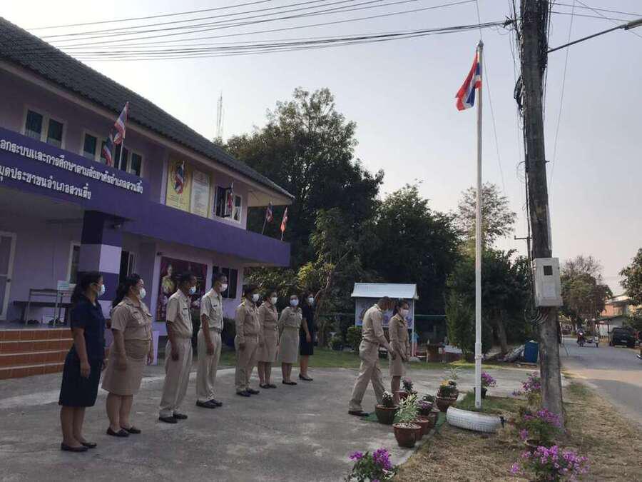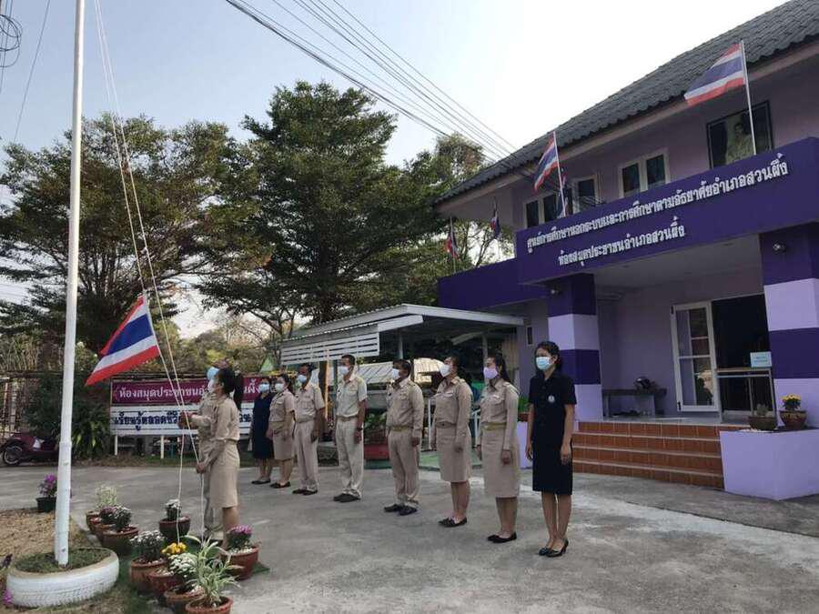 วันจันทร์ที่ 1 กุมภาพันธ์ 2564 กศน.อำเภอสวนผึ้งจัดกิจกรรมเข้าแถวเคารพธงชาติ ก่อนเริมการทำงาน S:0